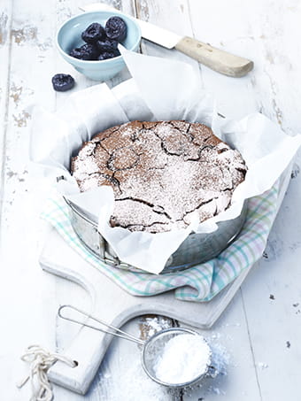 - Porre l'impasto nella tortiera apribile e cuocere per 40 minuti. Far raffreddare leggermente la torta e servire dopo averla cosparsa con zucchero a velo.